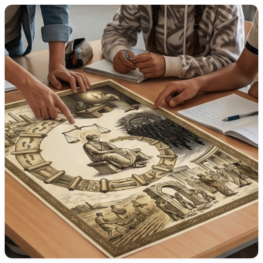• Descripción: Recurso didáctico visual para trabajar el pensamiento de diferentes autores de filosofía a partir de ilustraciones simbólicas y preguntas clave. Facilita la comprensión de sus teorías y la preparación de comentarios y preguntas de desarrollo de la PAU, con materiales de diferentes autores.