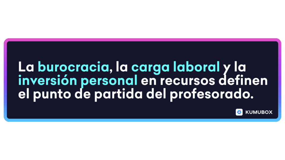 Los datos muestran que una parte significativa del profesorado no percibe que su centro educativo le proporcione recursos innovadores suficientes, lo que refuerza la necesidad de soluciones externas como Kumubox.