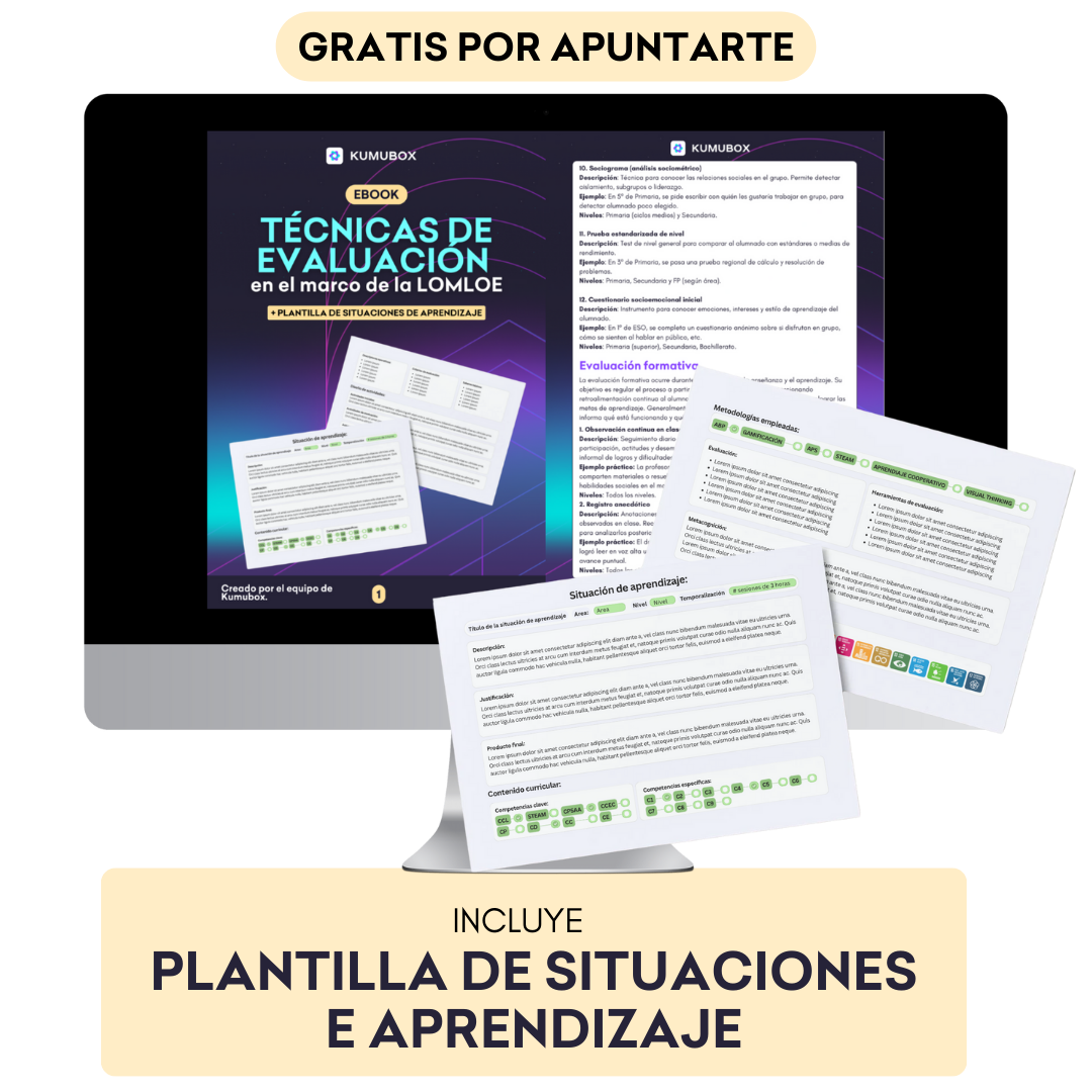 📚 ¡Regalo exclusivo por apuntarte! Al inscribirte en el taller, recibirás gratis nuestro ebook “Técnicas de evaluación en el marco de la LOMLOE + plantilla editable de Canva de situaciones de aprendizaje”. Descubre cómo implementar nuevas formas de evaluar de forma efectiva, con ejemplos, adaptados a todas las etapas y asignaturas. 🎥✨ Te lo enviaremos directamente a tu email al registrarte. ¡No te lo pierdas! 🚀📩